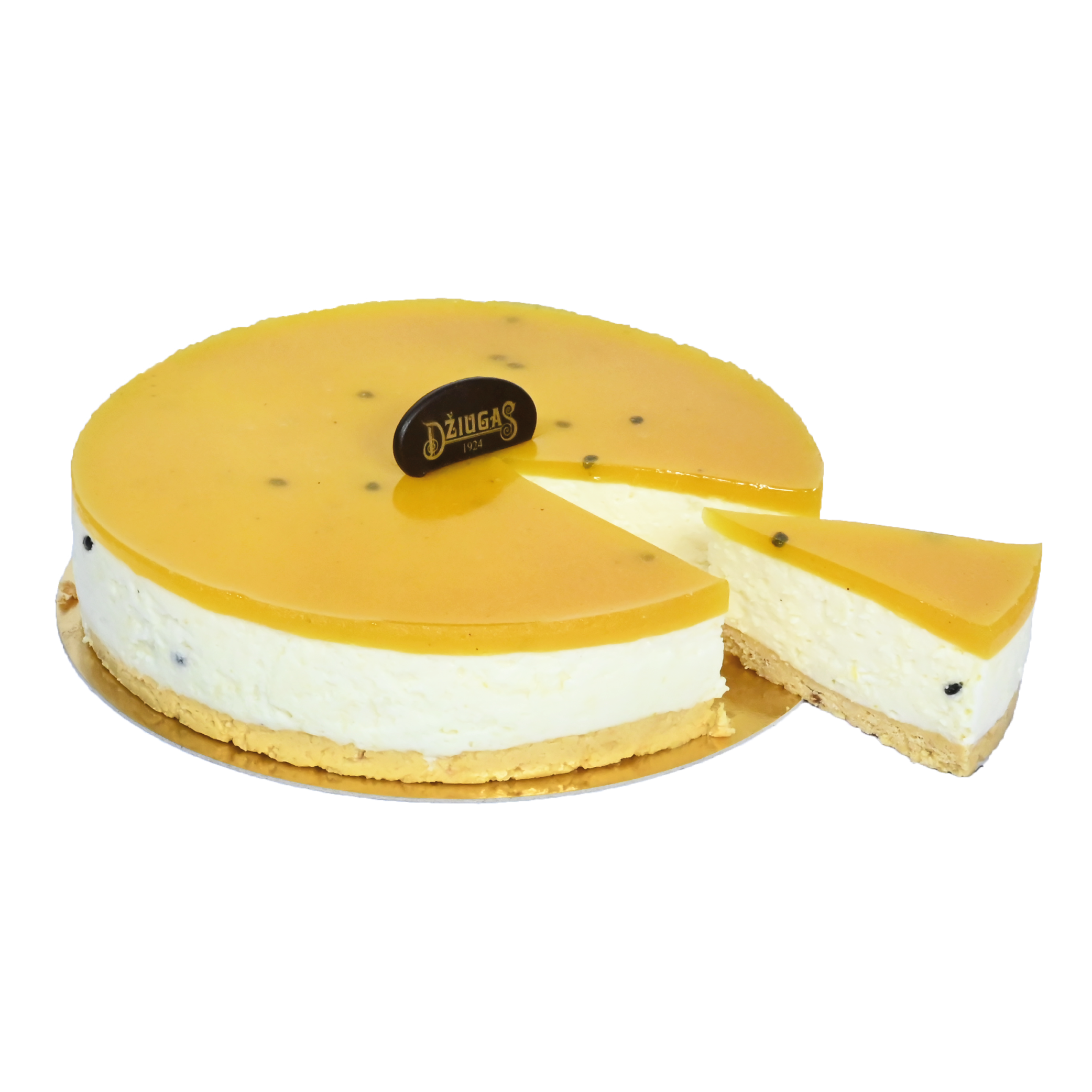 lengvas grietinėlės ir varškės sluoksnis, praturtintas pasiflorais ir 18 mėn. brandintu kietuoju sūriu DŽIUGAS®. Viršus dengtas pasiflorų želė. Tai itin lengvas ir gaivus tortas.