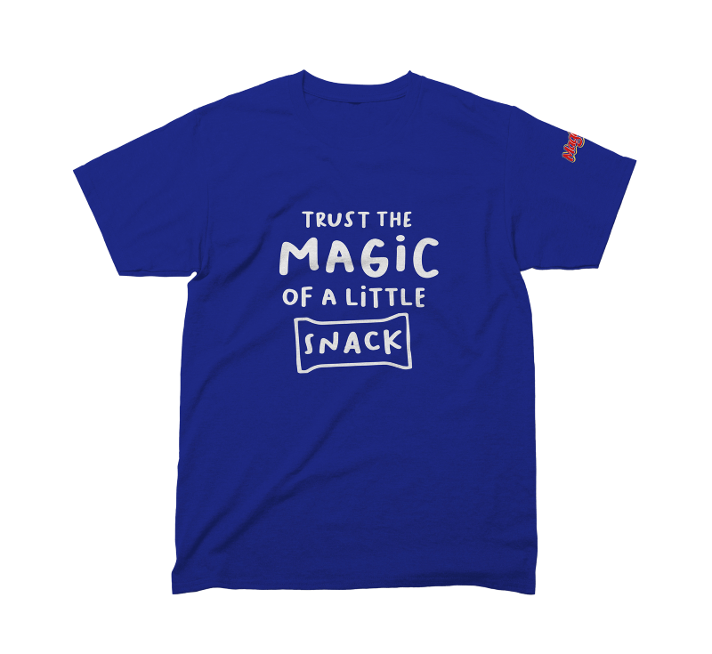 Marškinėliai, kurie primena: kartais pakanka tik mažo užkandžio, kad atsirastų magija.
