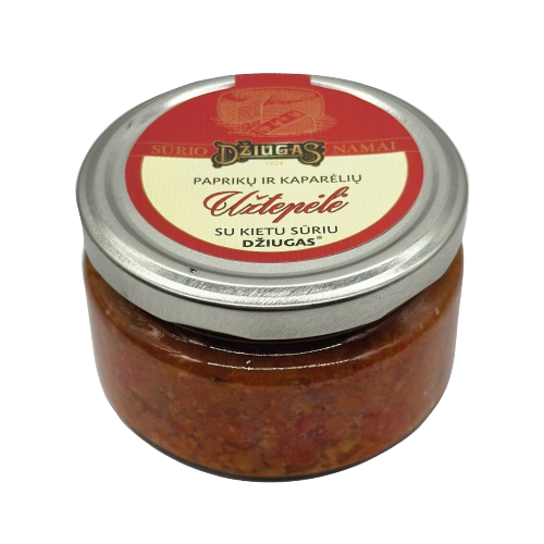 Paprikų, alyvuogių, kietojo sūrio DŽIUGAS® ir kaparėlių užtepėlės delikatesas pasižymi lengvai